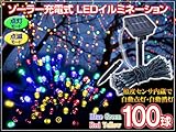 【ご予約12月上旬入荷予定】ソーラー充電式 LEDイルミネーション【赤青黄緑・計100球】12m 光センサー内蔵で自動ON/OFF切替 クリスマスイルミに
