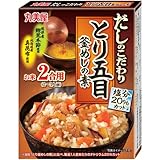 塩分20%カットの効果か、同社の定番商品の釜めしシリーズよりやや薄味に感じました。塩分控えめなのでダシの風味がもっと前に来るかと思ったんですが、ダシの風味も控えめでした。味が薄いと感じる程でなく全体的に薄味の上品な味わいですが、がっつり味のしみ込んだ炊き込みご飯が良い人には物足りないかも知れません。具の量は釜めしシリーズとあまり変わらない感じでした。釜めしシリーズと違い米2合用なので「釜めしシリーズでは少し炊ける量が多いかな」という人や、塩分が気になる人はこちらの方が良いかも知れません。 丸美屋 だしのこだわりとり五目釜めしの素箱入 153.5g 関連情報