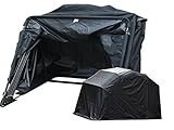 『大型バイクを2台収納可能なバイク用ガレージ』とありましたが、スカブ250が斜めでやっと。しかもスクリーンとミラーが当たり、開閉不能。スクリーンが当たらない位置まで入れて閉め、そのまま奥まで入れる。出すときはその逆。センタースタンドを起こすと閉まらない。閉めてからセンタースタンドを起こすと、フレームに当たる。(もちろん開かない)入り口のパイプを外せば、奥まで入れても、開閉出来ます。うちは少々工夫が必要です。写真の寸法は間違いないようですが、『大型バイクを2台収納可能なバイク用ガレージ』という言葉に期待した為、若干の不満が・・・自転車も一緒に収容しようと考えていましたが、ママチャリは難しそう。折り畳み自転車なら問題ない。リサーチ不足は自己責任。値段相応かなと。星は2~3です。 ワイド開閉式 バイクガレージ 270*180*155cm 関連情報